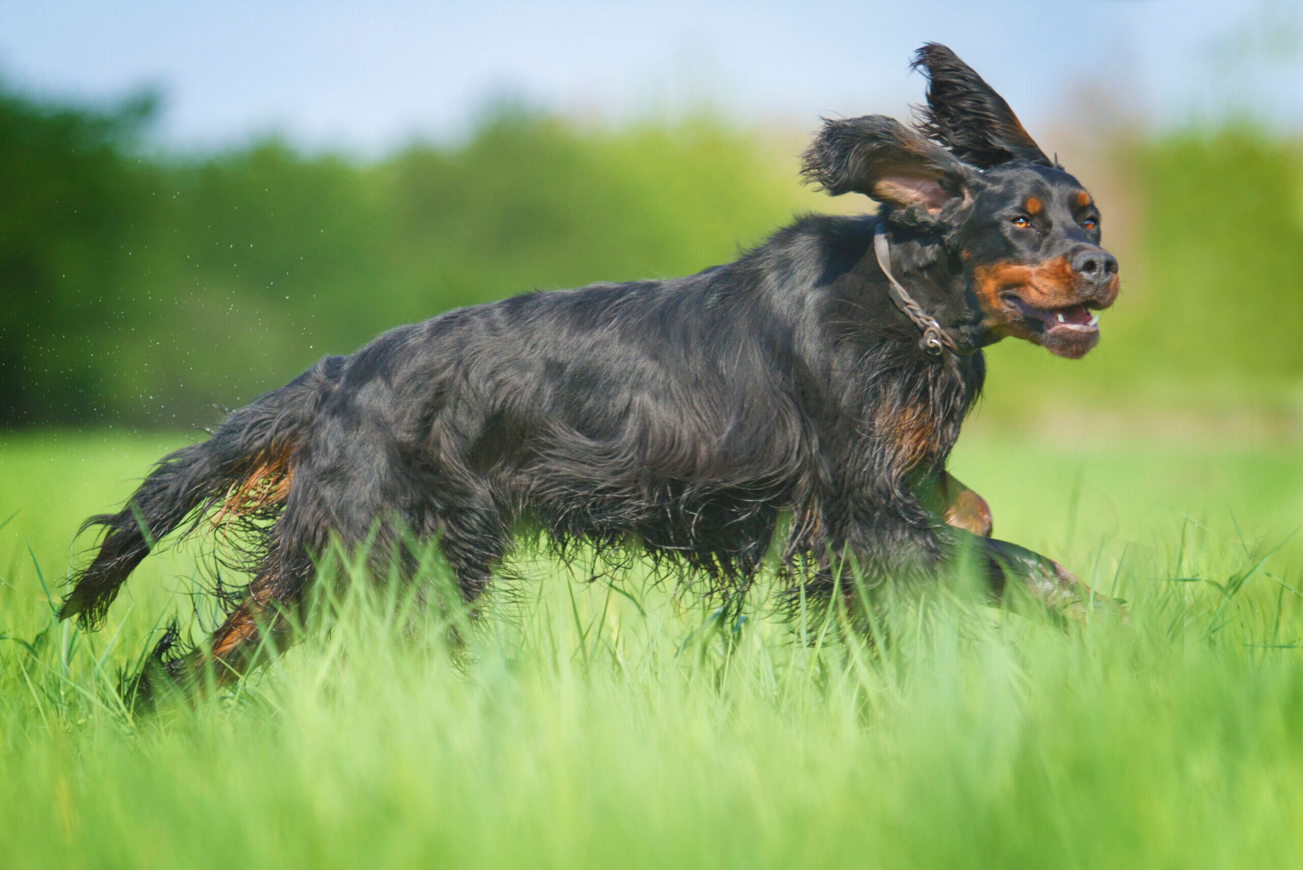 The Gordon Setter’s beautiful coat requires regular grooming to keep it in top condition. Their long, silky fur can easily become tangled or matted, so frequent brushing is necessary. Aim for at least a few times a week to prevent tangles and remove loose hair.
