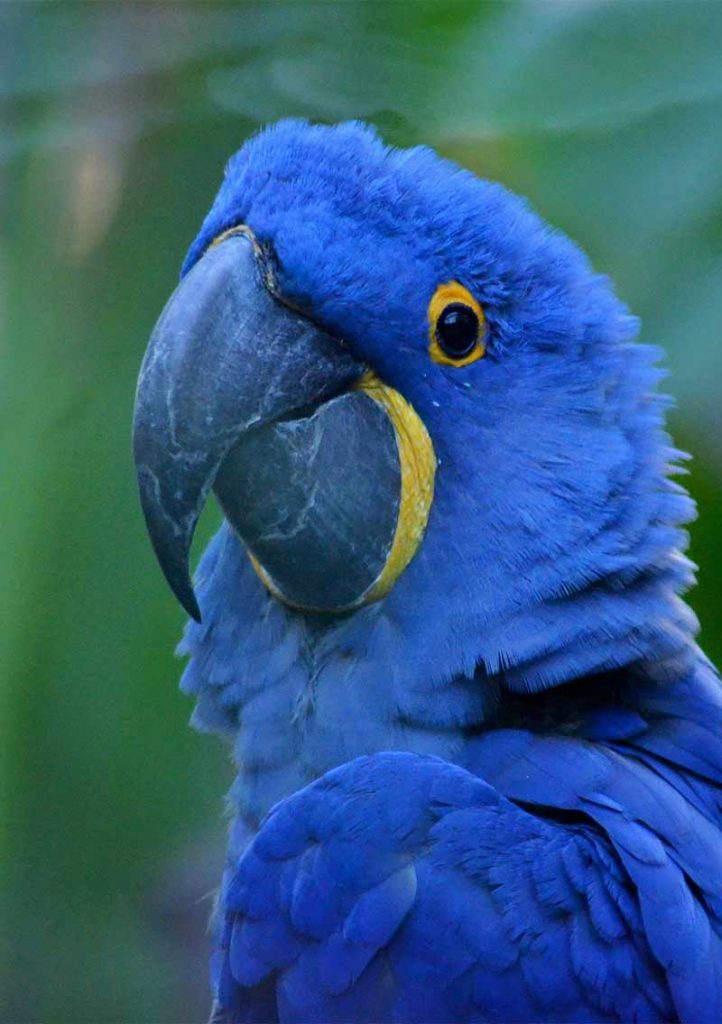 The deep blue feathers of the hyacinth macaw are truly mesmerizing. Accented with bright yellow around their eyes and beak, these birds are a visual spectacle. Their large size and powerful beak add to their majestic appearance, making them one of the most sought-after parrots for bird enthusiasts.