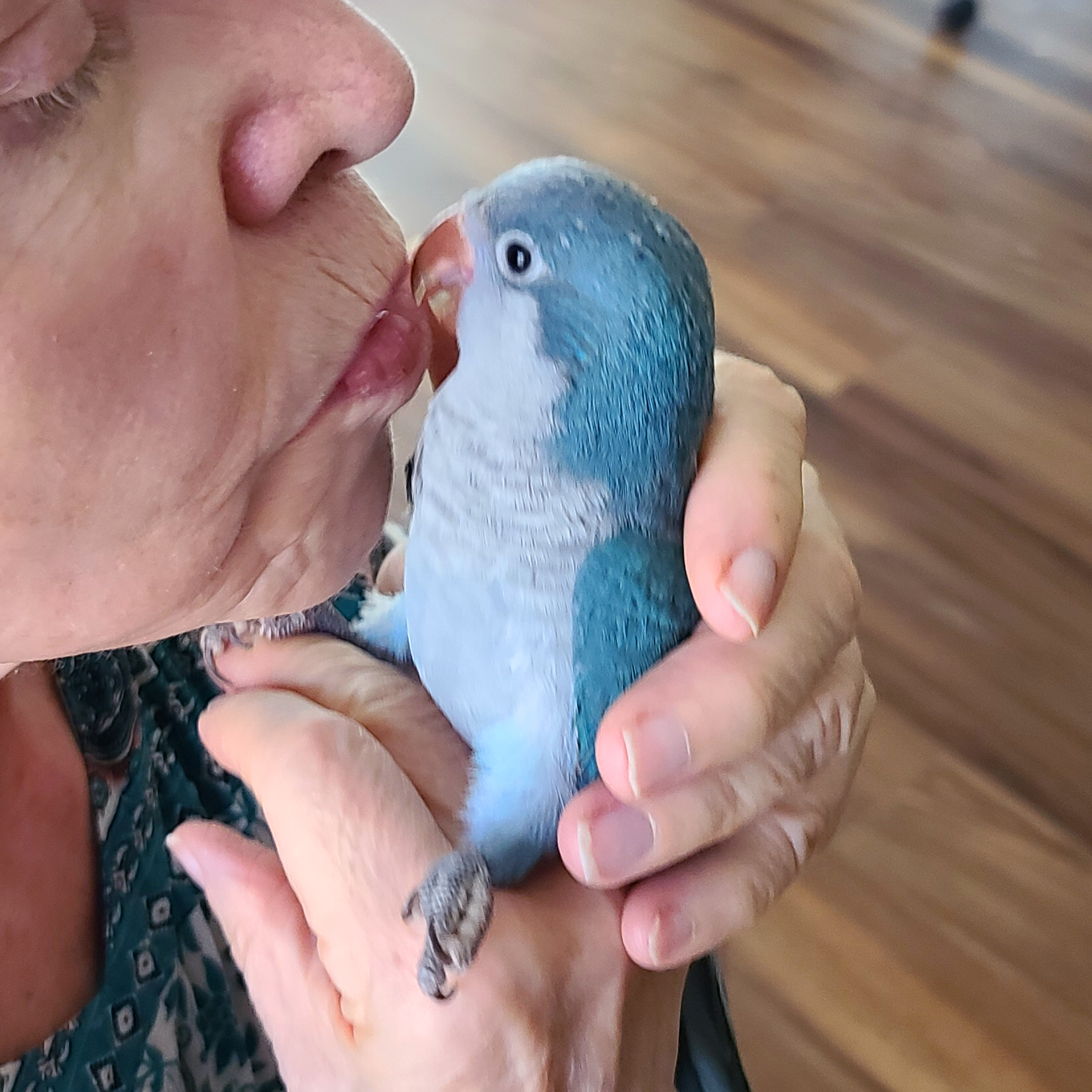 “Ready to Ship – Blue Quaker (Hand Fed …” from flybabiesaviary.com and used with no modifications.