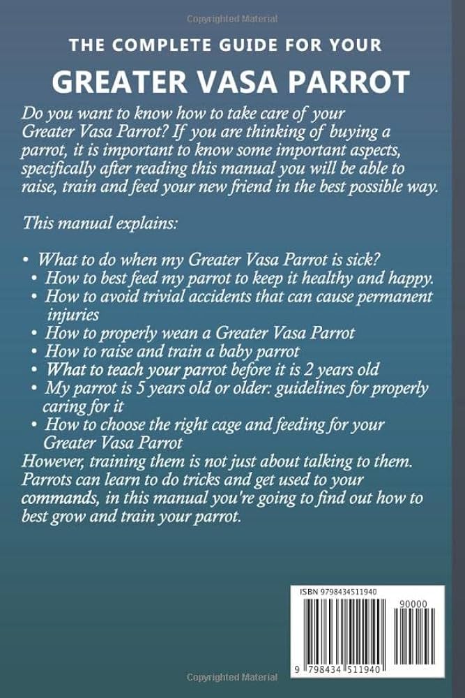Caring for a Vasa parrot involves meeting their physical, emotional, and social needs. These birds require a well-rounded approach to care that includes proper housing, nutrition, and enrichment activities. By understanding their unique requirements, you can ensure a happy and healthy life for your feathered friend.